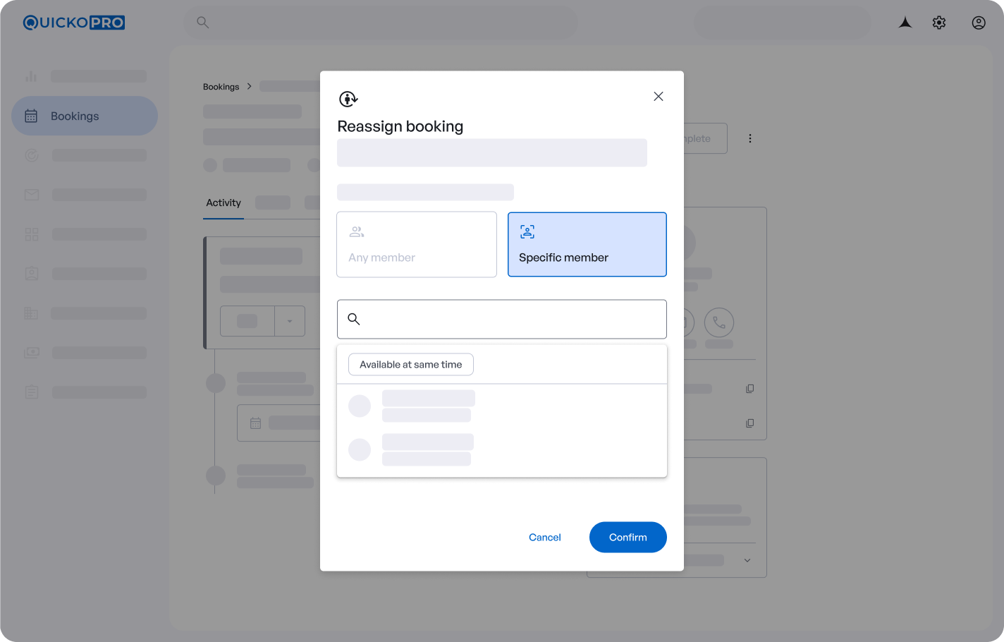 Once reassigned, the new member will be notified, and the booking will reflect the changes.
