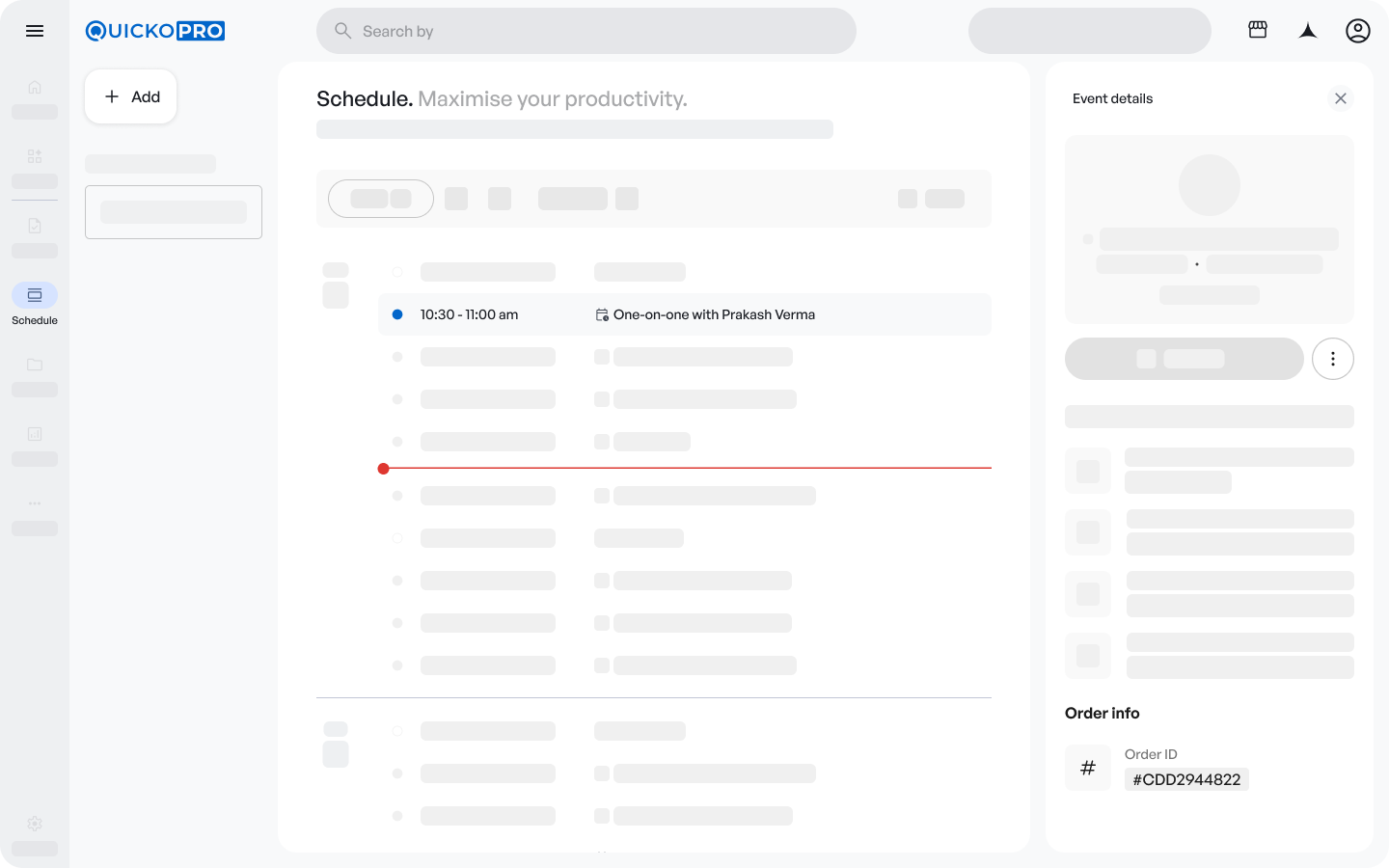 Bookings associated with an order appear in your Schedule. You can view booking details and access the linked order from there.